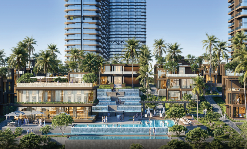 Dự án sở hữu hệ thống hồ bơi tràn viền, các khu vườn nổi, đường dạo sinh thái đa tầng và chuỗi tiện ích đa lớp được bố trí đan xen theo cả chiều ngang và chiều cao để tạo nên những trải nghiệm thị giác độc đáo.Thiết kế tận dụng tối đa các khoảng thoáng thông gió, mái xanh, công nghệ kính Low-E và vật liệu thân thiện môi trường, hướng đến khả năng vận hành tối ưu, tiết kiệm năng lượng và nâng cao trải nghiệm nghỉ dưỡng theo chuẩn xanh thế hệ mới.